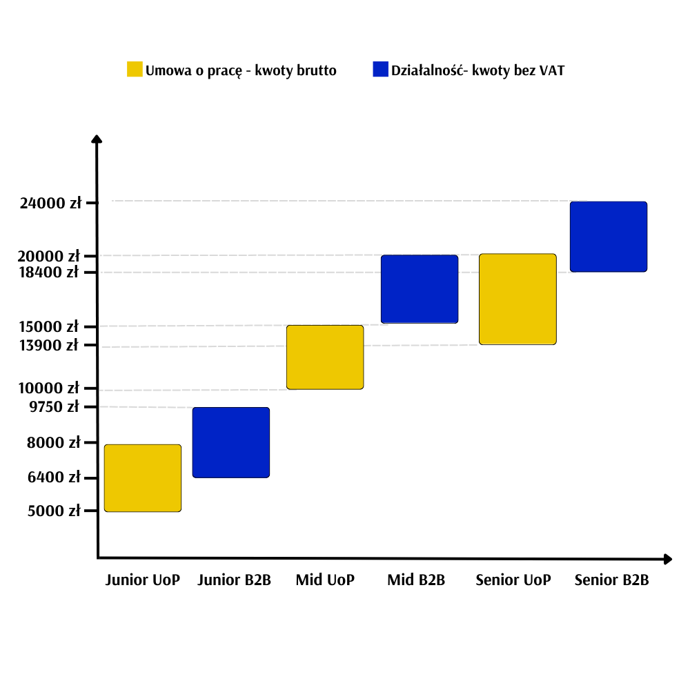 Wykres na podstawie danych https://nofluffjobs.com/pl/insights/it-zarobki/kalkulator-wynagrodzen